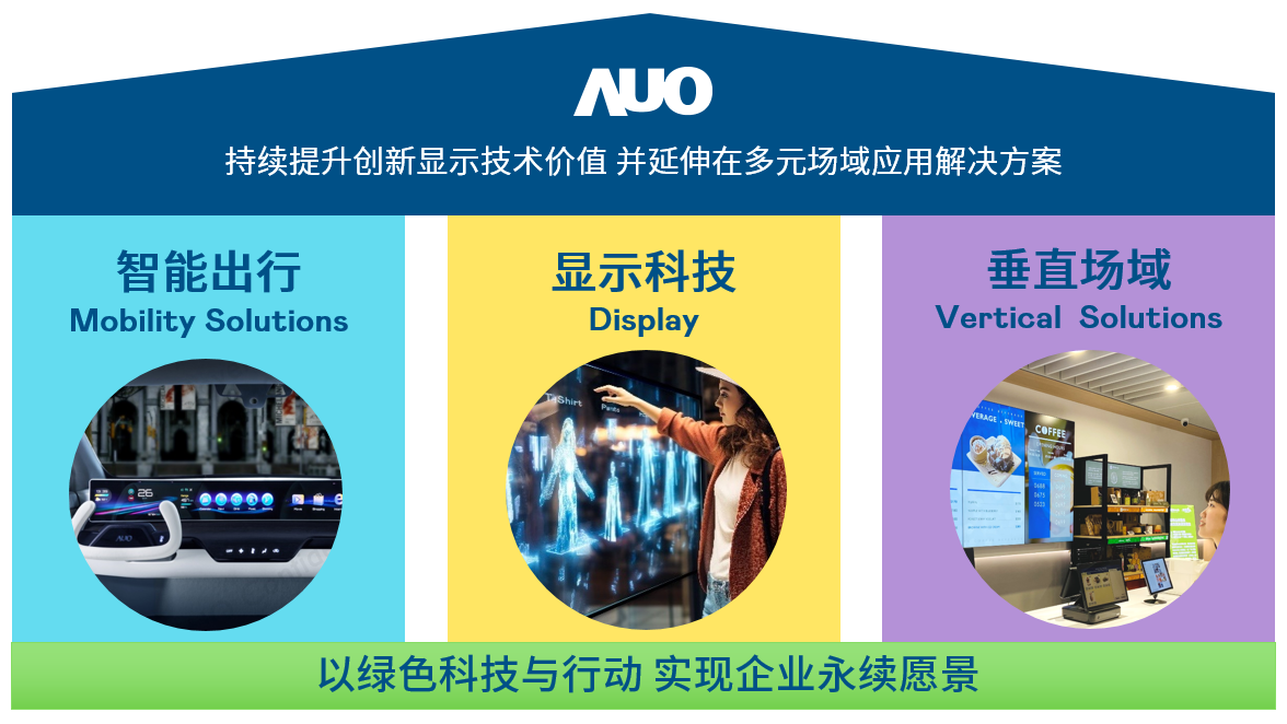 我们持续推动「双轴转型」,在精进显示技术附加价值(Go Premium),与深化垂直市场应用(Go Vertical)的策略下,对应世界杯官方网页版的优势竞争力与趋势,我们奠定显示科技、智慧移动、垂直场域三大永续营运支柱,在显示技术领域的根基之上,延伸布局多元场域应用解决方案。将先进显示科技助力智慧移动及垂直场域发展,并以绿色科技与行动为实践,在转型之路上贯彻永续经营之愿景。